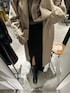 年始に着たい、冬コーデ! アウター⇨毎年大人気のデザインコート❤️ セーラーのバッグデザインが、女性らしい雰囲気に! 手首には、ベルトがあるので絞るとボリュームスリーブになるので厚めのニットでも着やすくなってます! 前でベルトを締めるとメリハリが出来後ろで結ぶとAラインシルエットになるので、かわいいです☺️ 156センチの私で、Sサイズを着用していて肩周りなどを少しゆとりがあり着丈は、足首より少し上くらいでした! トップス⇨毎年人気のデザインニット🧶 ビックなタートルがポイント❤️ 高さのあるタートルによって、マフラー・ストールなど要らなくなりまたは、小顔効果があります! モチモチとした生地なので、肌触りもいいので1枚で着用可能です🌟 スカート⇨ムルーアらしい、デザインスカート!深めに入ったスリットが女性らしい雰囲気に❤️ベルトは、取り外し可能なので コーデに合わせてお使い頂けます🌟 ストレッチがかなり入ってるので、見た目以上に伸びるので着心地も抜群です! 156センチの私で、Sサイズを着用していて着丈は足首位、スリットの深さは膝上くらいです。 ブーツ⇨リアルバイブーツ!👢 店頭で、実際履いていても軽くて歩きやすくまた、ヒールじだいが5.6センチ程度なので見た目以上に歩きやすいです! 普段、24.5センチの私で足のサイズはぴったりでした。