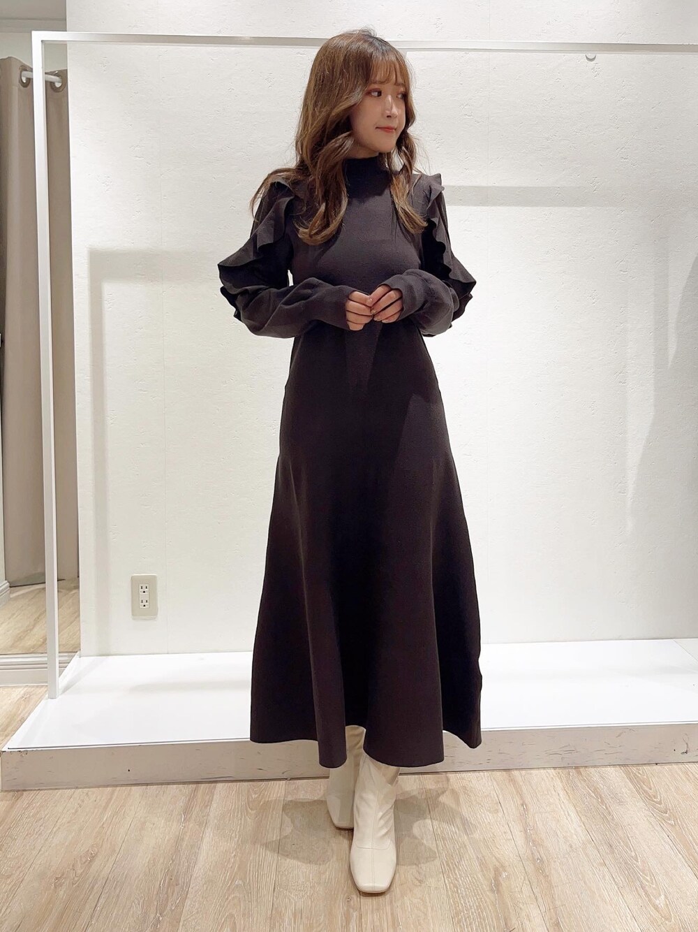 aivee(MERCURYDUO)のワンピース「ラッフルスリーブフレアニットワンピース」を使ったコーディネート