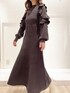 さらっと1枚でお出かけしたい 方におすすめ♡ さらっと締め付けがなく 着れるニットワンピース!! タートルやハイネックが苦手なを感じました♡ 胸下の切り替えもハイウエストでスタイルアップ効果抜群⚑ なにより肩から腕にかけての フリル×透け感が女性らしさを プラスしてくれるポイント◌𓈒𓐍 𓈒 少しあざといワンピースで 暗めのグレーを着てみました♡