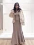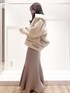 ❝ 最強のモテワンピ❞ 女性らしく綺麗めに 仕上がるこちらのワンピースは ボディーラインを 拾いにくい素材で作ってるので マーメイドシルエットでも 気になる部分をカバーしつつ スタイルアップ効果も抜群♡ 肩から後ろにかけてのラッフルは ハリのあるシャツ地なので 甘すぎずにまとまりますよ!!! 一緒に合わせているアウターは 裏地がスエードなので ボアジャケットでもボリューム出過ぎず にスッキリな印象で着れます♡ お尻が隠れるくらいのオーバーサイズなので着回しも抜群で合わせもしやすい 丈間ですよ!!
