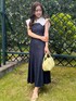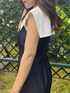 身長148cm/sサイズ着用 低身長さんでも着れちゃうワンピース! セーラーカラーの襟がポイントで二の腕を華奢に見せてくれます♡ 襟の部分はフックが付いており、Vネック風にもできますよ! ウエストのシャーリングで自然とウエストマークされてスタイルアップに! 全体のシルエットがマーメイドシルエットで女性らしさのある形に♡ 私の身長でもローヒールでお出かけが叶えられますよ♡