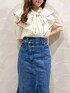 身長148cm/Sサイズ着用 [トップス] 配色バイカラーになっているブラウス 5部袖なので二の腕もカバーできますし、ゆとりがかなりあるのでサイズ感は着やすい印象でした! [スカート] デニムのマーメイドスカート♡ デニムにチャレンジしたいけどフェミニン派の皆さんにおすすめです! 女性らしく着れるシルエットになっており、深めのスリットもこれからショートブーツやロングブーツを履く季節にぴったり! サイズ感は伸縮性多少ありますが、デニムなので少しフィット感のある様に感じました^_^