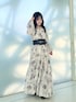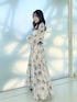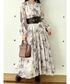 【ワンピース】 水彩タッチでぼかして描いたオリジナルフラワープリント♡ 胸下から広がるAラインの綺麗なシルエット! ウエストに太めのベルトを付けることで低身長の私でもバランス良く着こなせます♪ スキッパー襟なので、デコルテがスッキリして見えます! 袖はふわっとしたボリュームスリーブで、袖中心のスリットはボタンで開閉できる2wayデザインになっています♡