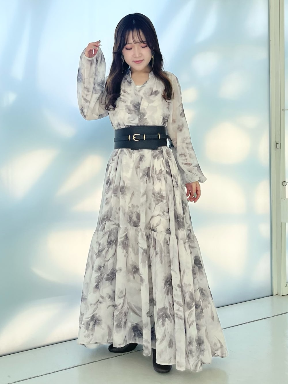 aivee(MERCURYDUO)のワンピース「フラワーギャザーマキシワンピース」を使ったコーディネート