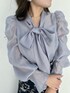 【ブラウス】 大きめのリボンと、袖山にギャザーを施してくしゅくしゅっとさせたパワショルも、敢えて大げさなのが可愛いポイントです♡ 肩が大きく見えないように、肩幅はぎゅっと小さく作ることで、華奢な印象を残しています! 【スカート】 ベルト切替えのないすっきりとしたハイウエストデザインなので、腰の位置が高く見え、スタイルアップ効果も♡ 部分的にフリンジが施された立体感のある刺繍が高見えしてくれます!