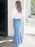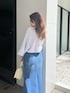 身長148cm/Mサイズ着用 【トップス】 もちっとした糸と、毛足のあるふわふわのミニシャギーの糸を一緒に編み立てたジャカードニット♡ お花柄が立体的に見えるニットトップス! クロップド丈で、裾から袖口に向かってつながる様なドルマンスリーブがゆるっとしてフェミニンな雰囲気に♡ 【スカート】 デニムのマーメイドスカート♡ 前にスリットが入っており、ブーツと一緒に合わせてチラッとシューズが見えますよ! 身長148cmでMサイズ着用してますが、丈感は長いなと思ったのでSサイズがおすすめです! 伸縮性はあるのでデニムでもストレスフリーに着れますよ♡