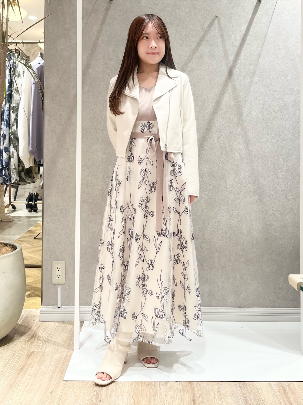 身長148cm/Mサイズ着用 【アウター】 毎年大人気のライダースジャケット♡ 程よい丈感に、シンプルかつデザイン性もあり 一枚持っておくだけでコーディネートの幅が広がりますよ♪ 【ワンピース】 オリジナル刺繍を施したドッキングワンピ♡ ハイウエスト切替えに加えて、縦に流れるような柄なので、よりスタイルアップして見えるのがポイントです♪ 身長148cmでMサイズ着用しておりますが、Vネックの空き具合が広めなのと丈感も長めなのでSサイズがおすすめです!