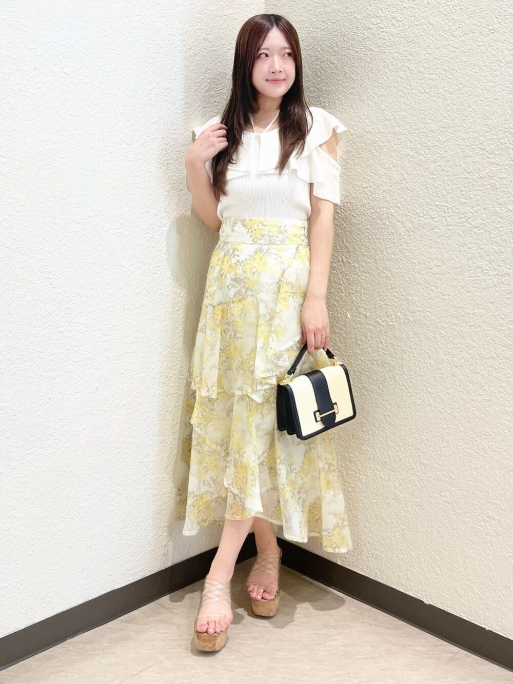 身長148cm/Sサイズ着用 【トップス】 着回し力抜群!この春のマストバイニット♡ モチっとした柔らかいニットでとても着やすいです! コーデに合わせて、ストラップは取り外しができる仕様なので、お好みのスタイルで着ていただけます♪ 【スカート】 夏らしい花柄と色合いが爽やかなサマーアイテム♡ ボリュームは出しつつも、ギャザーではなくフレアになっていることで腰回りがすっきり見えるようになっております! 148cmでSサイズ着用しておりますが短めの丈感なのでロングで履きたい方はMサイズがおすすめです♪