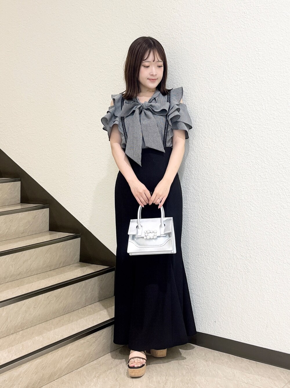 \ 低身長が着るキレイめコーデ♡ / モノトーンカラーでまとめたキレイめコーデ☺︎ リボンが目を惹くブラウスは、肩の部分に秘密のボタンがありオープンショルダーにもなる仕様で二の腕をカバーしてくれます! 肩にボリュームを出したい方は閉じてきるのがおすすめです♡ マーメイドスカートは、大人気アイテム! 履くだけで-3キロに見える美シルエットスカート! ロング丈で履きたい気分だったのでMサイズを履いてみました☺︎