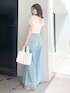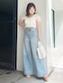 \ 夏のパンツスタイル♡ / 大人気チュールトップス! 遂に再入荷しました☺︎ 一気に目を惹くアイテムでトレンド感満載のコーデになります♡ デニムと合わせて、フェミニンカジュアルに仕上がりますよ! 148cmでMサイズを履いているので厚底のサンダルと合わせてみました♡