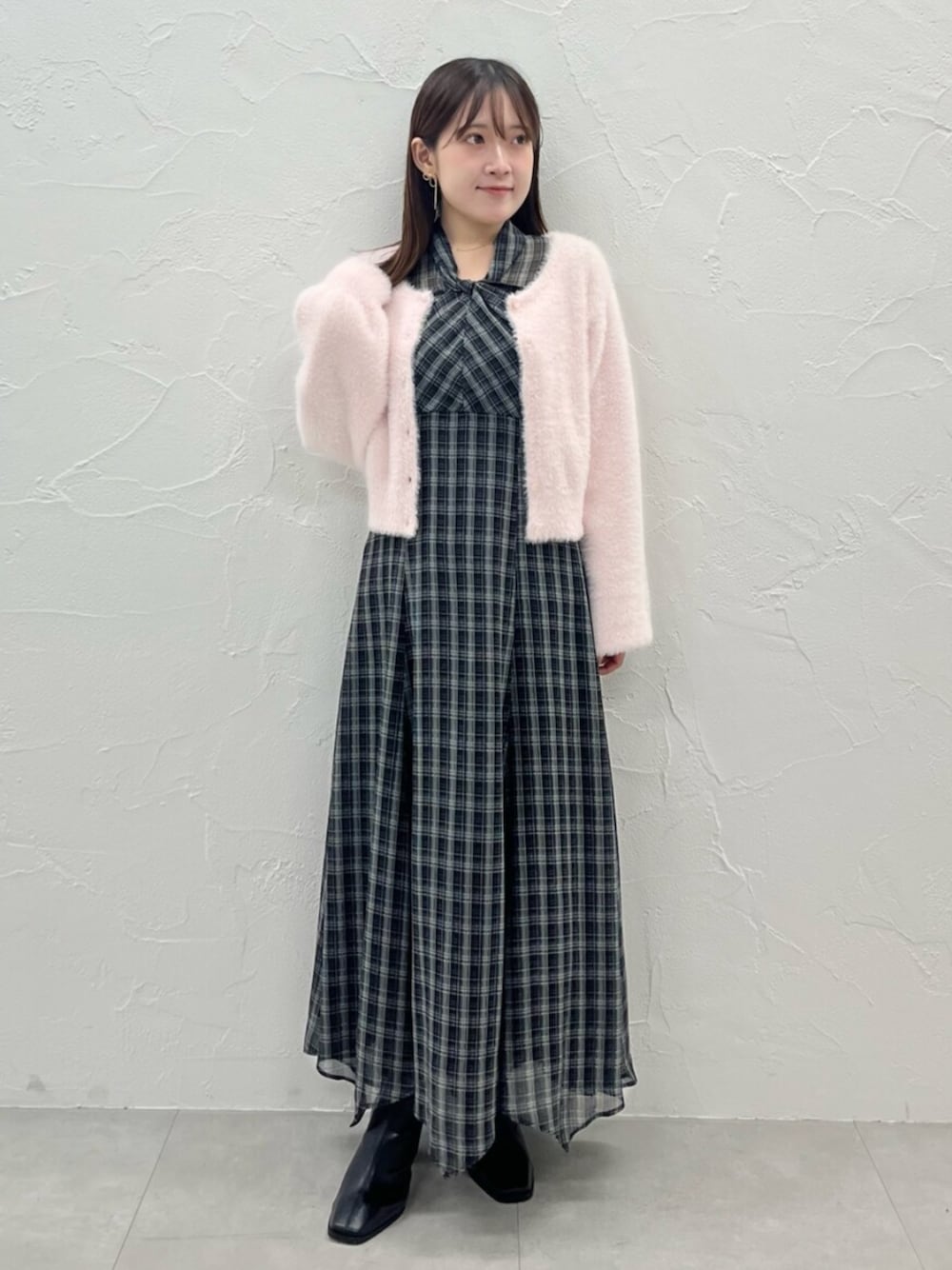 【ワンピース】 大人気‼️チェックワンピース👗 胸元のツイストネックがポイントで リボンではないので、大人可愛く着れます✨ 裾先はスカートに動きが出るようにカッティングされていて、動くたびに揺れるおしゃれワンピース🤍 身長148cmでMサイズ着用、足首下の丈感でした! 【カーディガン】 毎年大人気のふわふわカーディガン🧶 羽織でもトップスとしても利用できて、 素材もソフトで着心地抜群です!