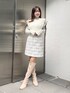 【トップス】 少しシャリっとした素材のニットトップス🧶 お袖部分がオープンデザインにリボン付きになっており、程よい肌見せに♡ アイボリーでも透けづらく、伸縮性もあってとても着やすかったです! 【スカート】 秋に着たいツイードスカート💎 身長148cm、Mサイズ着用で台形シルエットになっており、お尻や太ももを丁度カバーしてくれる丈感ですよ!