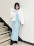 aivee(MERCURYDUO)のダウンジャケット/コート「2WAYフード付きアライドショートニットダウン」を使ったコーディネート