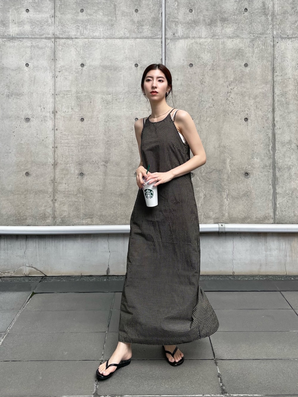 高村楓のワンピース「ギンガムチェックフィットキャミワンピース」を使ったコーディネート