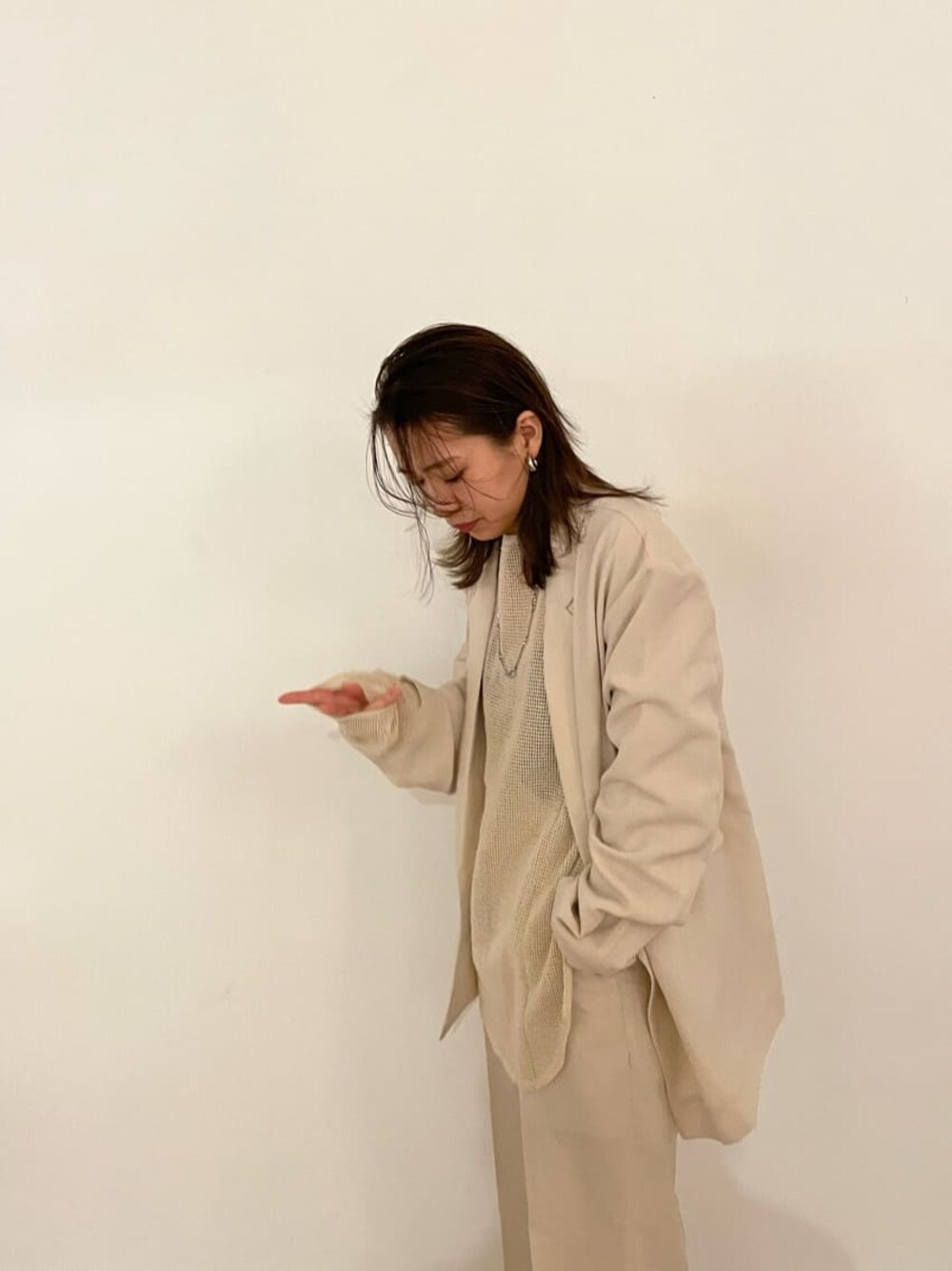 嶋津里美(Ungrid)のセットアップ「【WEB限定】テーラードジャケットセットアップ」を使ったコーディネート