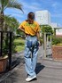 キャッチーな洋服でラフだけど他と差を♡【tops】お問い合わせも多かったTee♡キャラクターがそれぞれ可愛いすぎて夏場はこんなキャッチーなデザインを着たくなりますよね!普段なら選ばないデザインもTシャツなら取り入れやすいですね♡【denim】これまた人気があるデザイン性が高いデニム!フロントがアシメになっていて、バックから見てもリメイクが効いていてお洒落な一本に。ハイウエストでウエストはきゅっとしまるのでスタイルアップに見せてくれます♡シルエットはワイドなのでトップスはコンパクトめか必ずイン出来るトップスだとデニムの良さが生きます♡