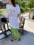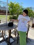 気のおける友達とlunch【Tee】こういうゆったりしたサイズで丈が長めのカットソーは古着ぽさもありついつい集めちゃいがち。特にこのライトグレーは配色がお気に入り。デニムにもスカートにも相性ばっちり。スカートやワンピースと着る際はインせずアウトで着るとこなれ感がでますよね♡【one-piece】大人気のワンピース!グリーンが綺麗な色味なのですごく映えるかと♡鮮やかなカラーを着るだけで気分も明るくなるので是非挑戦してみてください!腕を出すのに抵抗ある方はTシャツやベスト、シャツ合わせで♡!