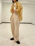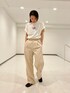 デイリー使いの洋服もかっこよく。【Tee】店舗限定アイテムになります。【shirt】素材が少し固めで張り感があるので形が崩れにくい仕様です。ゆったりしたサイズ感でステッチがポイント。首元2個くらいまでボタンを留めて中に着ているカラータンクトップをチラ見せするのもおすすめな着方です!着画のように中に柄を入れて敢えてシアーを利用して透け感を楽しむのも◎【pants】わたしは大丈夫でしたがリネン混なので敏感な方は少しチクチクするかもしれません。形が綺麗に下へ落ちてくれるストレート。161cmのMサイズ着用で床に少し付くくらいの丈なので長めが好みの方はわたし同様にMを。