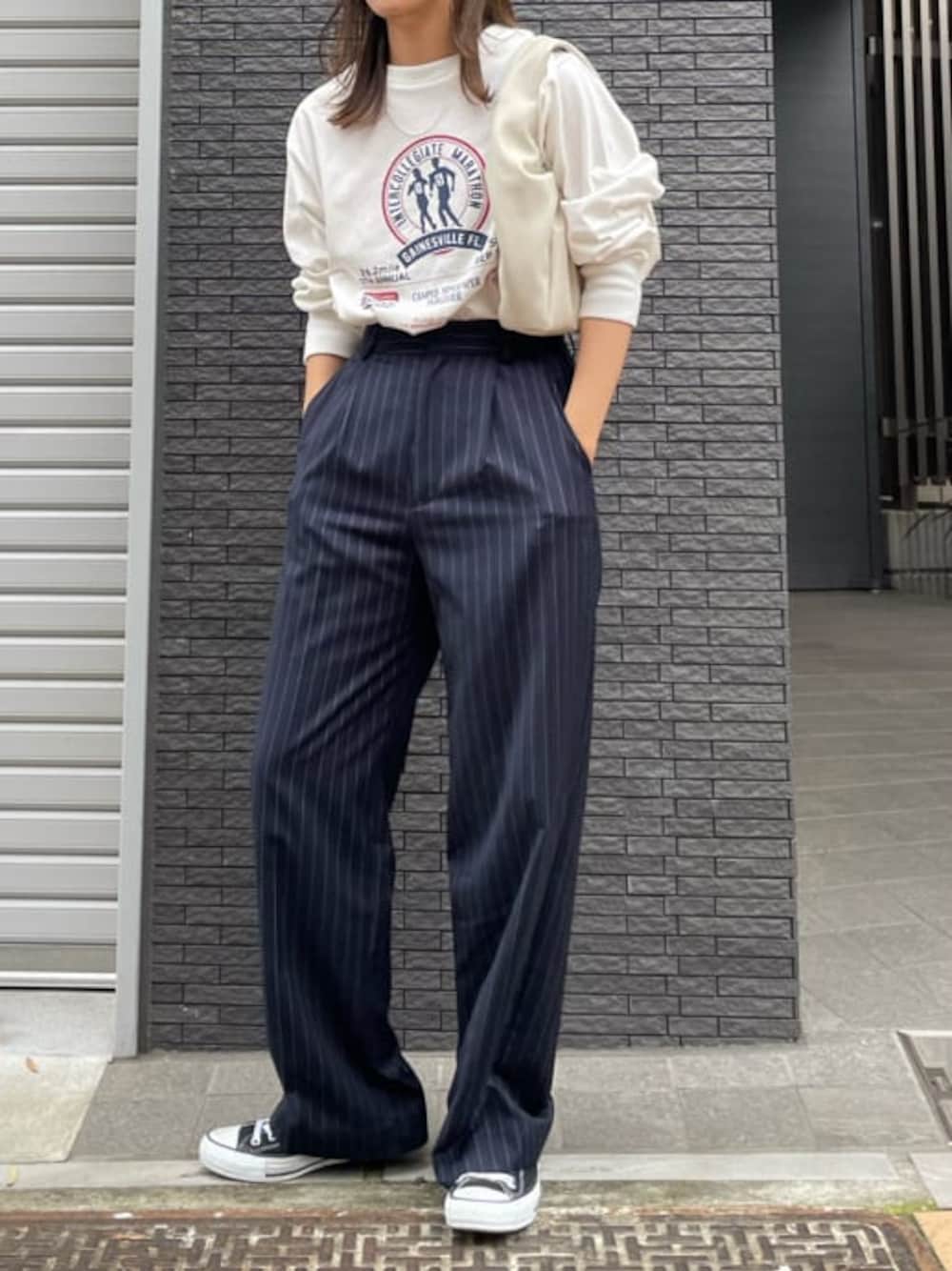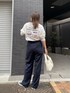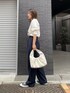 嶋津里美(Ungrid)のスラックス「センタープレスルーズパンツ」を使ったコーディネート