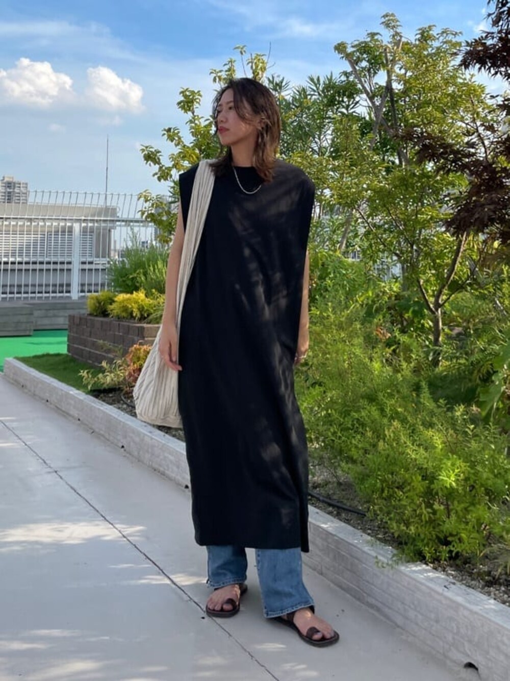 嶋津里美(Ungrid)のワンピース「ショルダータックカットワンピース」を使ったコーディネート