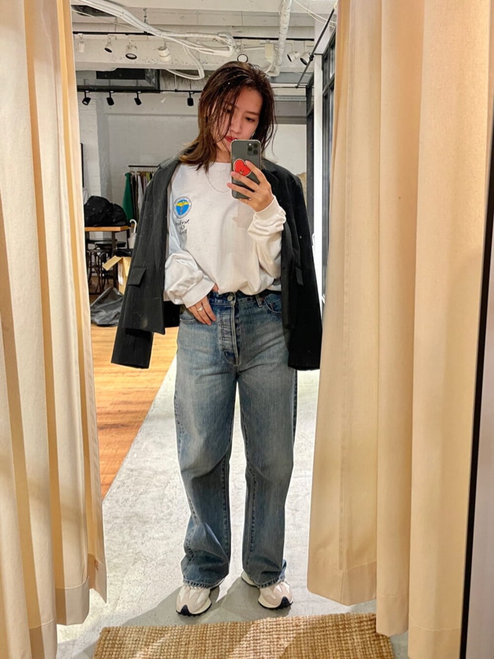 【tops】お気に入りロンT!!ニューヨークの自在する公共施設のロゴになります。わたしは清掃局のデザインを着用♡このメンズライクなデザインを女の子が着ているの可愛いです♡【jacket】今季はショート丈で女性らしさを。生地は少しだけ起毛感があるかな?と思います!いつもと違った雰囲気のジャケットで人と差をつけて下さい♡【denim】161cmで24インチ着用。ストレートでチャックではなくボタンでフロントは留める仕様です。ヒールで合わせると脚長効果でほんとに綺麗に見せてくれます!