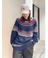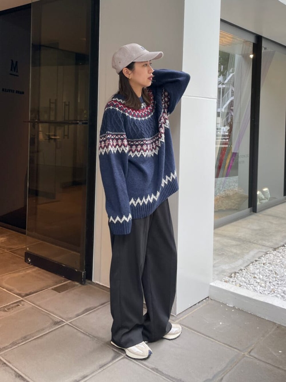 メンズライクコーデ♪【tops】ノルディック柄でシンプルになりがちな冬服をたまには雰囲氣を変えて違う印象に。ノルディック柄→トナカイや雪の結晶モチーフ、幾何学模様などを用いた柄のこと。ウールも入っているのでしっかりした生地で暖かいですが、敏感な方はチクチク感じるかもしれません。