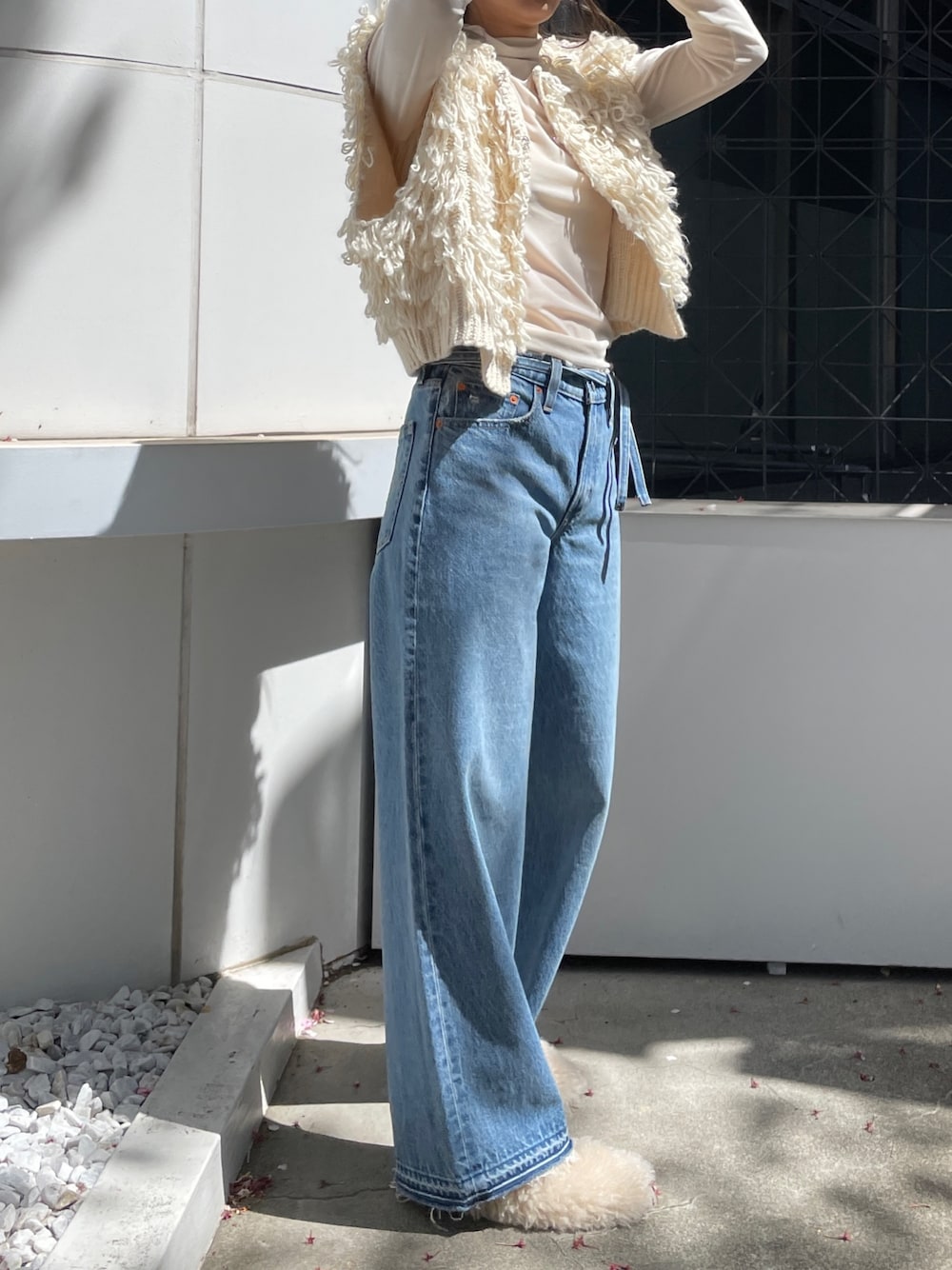 嶋津里美(Ungrid)のデニムパンツ「Levi's別注 XL STRAIGHTダメージデニム」を使ったコーディネート