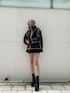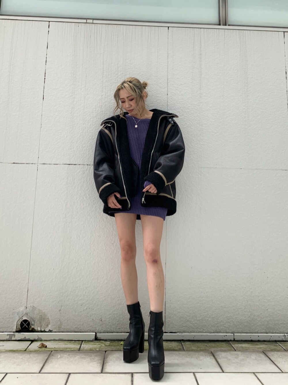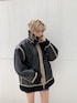 パイピングがお洒落すぎるB-3♡オーバーサイズでしっかり着込め、中がボアなのですーごくあったかいです!しかも軽い!全部閉めてベルトで止めても可愛いくて、首元まで防寒出来ちゃいます!パープルのワンピでちょっとかっこよく合わせました!