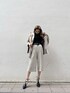 ルーズなシルエットがお洒落なセットアップ♡光沢感のある素材で綺麗めに着用できますが、オーバーサイズなので抜け感もしっかり出せます!ミニバッグと、クリアヒールがお洒落な靴で綺麗めにまとめました!あえてスニーカーでカジュアルダウンさせるのもお洒落なのでオススメです♡ボトムがゆったりなので、フィット感がありスッキリ見えするラメのTOPSで合わせバランスよく♡このラメタートル、チクチクせずサラッとした着心地で本当に着やすいです!薄いグレーのセットアップなのでラメTOPSやベルトを黒で引き締め、クールな印象でまとめてみました✌︎
