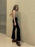 EVRIS毎回人気のフレアデニムを使ったコーデ♡ パッと見かっこいい印象の中に、TOPSでレディライクなアイテムをチョイスし、スッキリまとめました♪このデニム、膝上までピタッとした綺麗なシルエットですごく脚長効果があるんです♡ピタッと履けるのに伸縮性があって抜群に動きやすい☑︎150cmのスタッフもスニーカー合わせで履いていたので小柄さんにもオススメデニムです♡私はSサイズ着用ですが、162cmで丈感ギリギリが良ければMサイズでもいいかもしれないです☑︎このハイウエストのデニムには、ショート丈のEMODAのTOPSでスタイルアップを♪ウエストにシャーリングが施されてあり、ウエストが更に細見えします♡タンクトップっぽいシルエットでも、肩のバンドを下げてオフショルでも2WAY仕様なので、その日の気分に合わせて雰囲気を変えられます♪女性らしくきたい日はオフショル着用がオススメです♡夏場も着やすいサラッとした着心地なので、これからの時期大活躍間違いなしです♪クリアベルトや、メッシュ編みのサンダルで夏っぽさをプラスすると重くなりすぎず、季節感も出るのでこちらもオススメです♡サンダルは高低差もない厚底なのですごく楽ちん+足がきれいに見えますよ♪コルクは夏のサンダルで1足は必ず持っておきたいアイテムですよね!コルクなのでいろんなカラーのお洋服に合わせやすいです♪