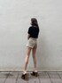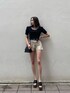 ショーパン✖︎TOPSの定番夏コーデ♡定番ですが袖のパフスリーブで今季のトレンドも盛り込んだスタイルアップコーデにしてみました♪ 【TOPS】袖にギャザーとタックが施されておりパフスリーブでトレンド感のある1着です♪程よくフィット感もあり、透け感がなくしっかりとした生地感です!前後2way着用可能なデザインになっており、今回は首回りをすっきりみせたかったのでUネックで着用しました♡ 【bottom】EVRIS定番のカラーショーパンは、ハイウエストで脚長効果もあり、ウエストがすごく細見えします☑︎ポケット位置も高めでヒップアップも◎足回りは広めの作りなので足も細見えする最強デニムです♡ベージュカラーだとシーズン関係なく年中履きやすいです♪足元は安定感抜群の厚底で更にスタイルアップをはかり、カジュアルになりすぎないよう綺麗めバッグを合わせました♡