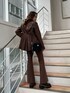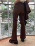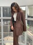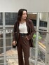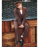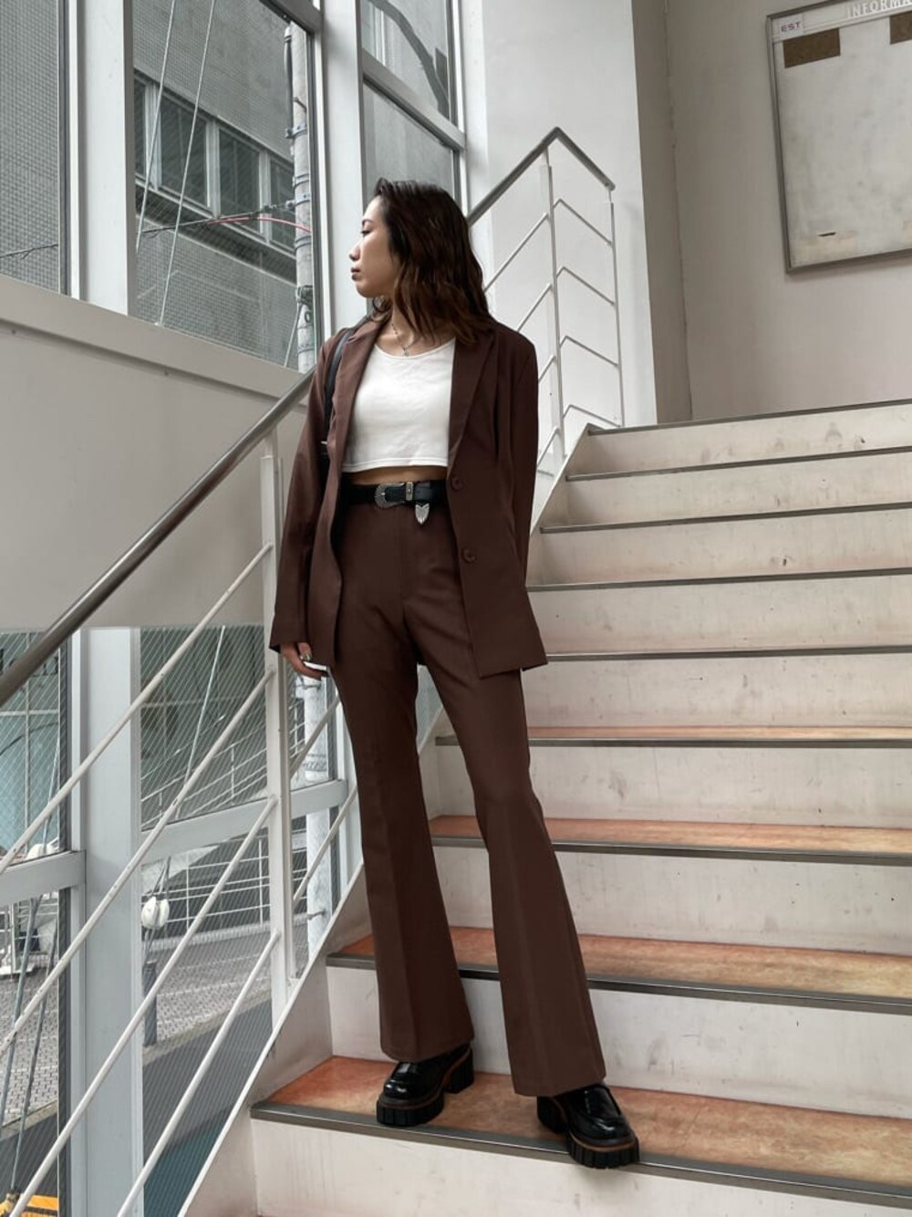 AN&YURI×EVRISコラボアイテム♪ブラウンのSET UPを着てみました♡少しオーバーサイズで162cmでもお尻がすっぽり隠れる丈感のジャケットは、ウエスト部分にタックが入っておりウエストがキュッとくびれて見えるので着痩せ効果が♡小柄さんも着やすいです♪肩パッドがついてるのですが、体格に合わせて取り外しも出来ます✌︎フレアシルエットのパンツは程よくゆとりがありラインがすごく綺麗で脚長効果抜群です♡162cmの私でSサイズだとローヒールでも合わせられる丈感です♡綺麗めな印象のセットアップなので、足元はごつめにローファーでかっこいい印象に♡ウエストマークでベルトをし、EVRISっぽくサニーモチーフのバッグで合わせました♪