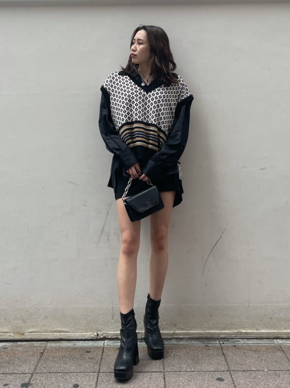 トレンドのニットベスト着回しコーデ♡ワンピース風にレディライクに合わせてみました♪【knit】トレンドニットベストはオーバーサイズで着回し力も抜群!シャツやロンTなどを重ねてのレイヤードスタイルは一気にオシャレ感がUPします♡腕周りはゆったりなので二の腕も細見えします♪ワンピ風着用だと162cmでボトムが少し見えるくらいなので、シャツと同じカラーのスカートで統一感を出しました☑︎【shirt】羽織でもTOPSとしても使えるシャツは、レーヨン素材でひんやり感がずっと続くので暑苦しさもありません♡サラッとした生地で落ち感があるのでスッキリ見えし、手首はキュッとしてますが袖は少しボリュームがあるので、女性らしい丸みのあるシルエットで着用できます!【shoes】このブーツ、足首までしっかりフィットしてくれるので脚がすごく細見えします☑︎フィットしてくれるおかげで脚と一体化してるような感覚なので安定感もばっちりです♡厚底で程よい傾斜があるので、疲れにくく、しっかりとスタイルアップしてくれます♪