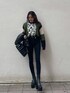 EVRISらしい柄ニットでスタイルアップコーデ♡【tops】配色がお洒落なEVRISらしいニットです♪一枚で着てもコーデの主役級に存在感があり、アウターを羽織った時にチラッと見える柄がワンポイントになってくれます☑︎少しゆったりしたサイズ感で、162cmで骨盤ぐらいの丈感になってます♡【bottom】ハイウエストで脚長効果バッチリのスキニーデニム!驚くほど伸縮性があり、ピタッとフィットしてくれるのにとにかくラクすぎるんです☑︎丈感はくるぶし上ぐらいなので、身長問わず履きやすい丈感ですよ♡【outer】毎年といっていいほど登場するレザージャケットは、程よい光沢感が強くなりすぎず合わせやすいです♪ゆったりサイズで中もしっかり着込めちゃいます♡ボタンを閉めてTOPS感覚での着用もオススメです☑︎【shoes】しっかり盛れるのに、傾斜があまりないのですごく楽ちんなスタイルアップには欠かせない厚底ブーツ♡足首が細身でスッキリ見えし、ヒールも太めなので安定感抜群の一足です♡