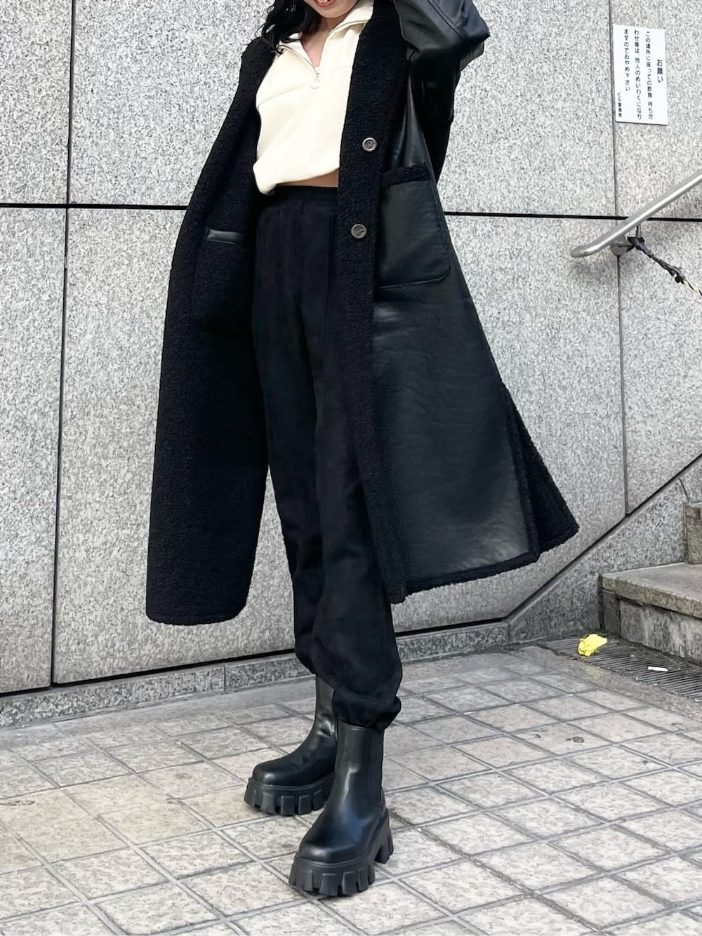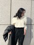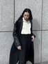 【outer】フェイクレザーとボアのどちらでも着れるリバーシブルのロングアウターです♡雰囲気がガラッと変わりオススメです☑︎裾のサイドにスリットが入っているので、着られてる感なくスッキリみえます♪【tops】今期トレンドのフロントジップデザインで、開けて着用だと顔まわりもスッキリします♪裾にはゴムが施されており、丈感も調節して頂けます♡【bottom】スウェードっぽい質感なのでカジュアルになり過ぎず、コーデに馴染みやすいです☑︎ピンタックが入っているので脚長効果もばっちりです♡