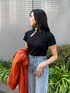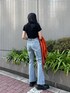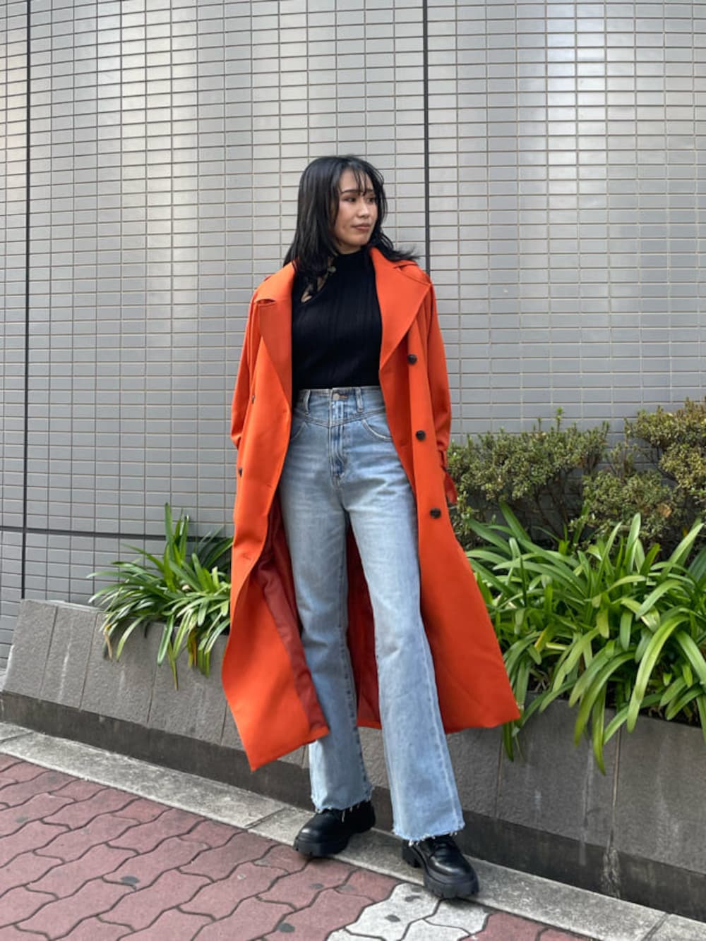 今季っぽいオレンジが可愛いカジュアルコーデ♡ 【アウター】・162cmの丈感です・襟が大きめで肩周りがスッキリみえます・腕周りゆったりで中もしっかり着込めます【トップス】・ワンポイントの肌見せが可愛い・厚手のカップ付きで1枚で着用できます・162cmでおへそ下ぐらいの丈感です【デニム】・ハイウエストで脚長効果抜群・程よくフィットするフレアシルエットで美脚にみえます・綿100%なのではじめは硬めですが、履けば履くほど馴染みます【シューズ】・3cmほどのインソールが入っているのでしっかりスタイルアップできます・レースアップデザインですがサイドジップで着脱が簡単です・片足400gで超軽量、疲れにくいです