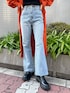 今季っぽいオレンジが可愛いカジュアルコーデ♡ 【アウター】・162cmの丈感です・襟が大きめで肩周りがスッキリみえます・腕周りゆったりで中もしっかり着込めます【トップス】・ワンポイントの肌見せが可愛い・厚手のカップ付きで1枚で着用できます・162cmでおへそ下ぐらいの丈感です【デニム】・ハイウエストで脚長効果抜群・程よくフィットするフレアシルエットで美脚にみえます・綿100%なのではじめは硬めですが、履けば履くほど馴染みます【シューズ】・3cmほどのインソールが入っているのでしっかりスタイルアップできます・レースアップデザインですがサイドジップで着脱が簡単です・片足400gで超軽量、疲れにくいです