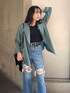 春のカジュアルコーデ♡ 【ジャケット】・162cmでお尻がすっぽり隠れる丈感です・ゆったりシルエットで中も着込めます・裏地付き【トップス】・EVRIS定番サニーモチーフです・おへそちょっと下ぐらいの丈感です、生地感しっかりで透けにくい素材です【デニム】・ハイウエストで、膝上のダメージが脚を長く見せてくれます・細身のワイドデニムです【バッグ】・中が二つに仕切られており荷物の整理がしやすいです・光沢感のあるクロコ素材が綺麗めに使用しやすいです【ブーツ】・3cmほどのインソールが入っているのでしっかりスタイルアップできます・レースアップデザインですがサイドジップで着脱が簡単です・片足400gで超軽量、疲れにくいです【ベルト】・EVRIS大定番ベルトです・大きめバックルが存在感抜群です