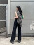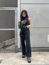 夏のブラックコーデ♡ 【トップス】・ステッチがワンポイントで可愛いです・しっかりした生地で透け感もありません【シャツ】・少しオーバーサイズでゆったりしてます・程よい透け感が真夏まで使いやすいです【デニム】・高め位置のスラッシュが脚長効果抜群です・EVRISのデニムはハイウエストで腰回りがすごくスッキリ見えます【バッグ】・横長で長財布も入るサイズ感です・サイドのEVRISロゴがワンポイントです・パキッとしたグリーンをコーデの差し色にしました【サンダル】・傾斜もなく厚底でしっかりスタイルアップできます・ベルト付きでしっかり固定されるので安定感があります【ベルト】・EVRIS大定番ベルトです・大きめバックルが存在感バッチリです