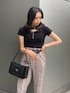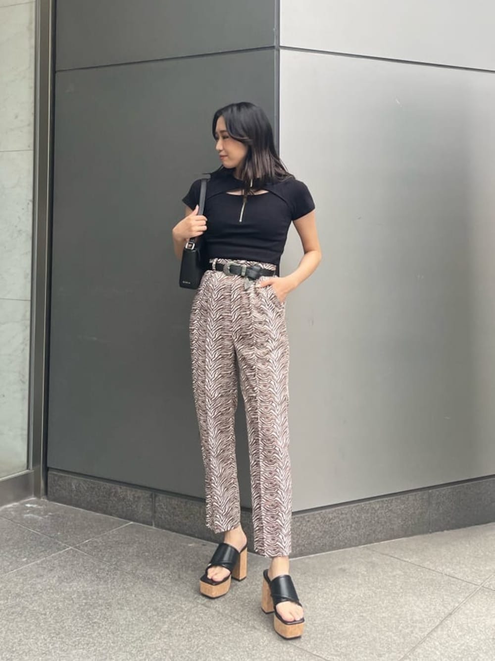 大人っぽくゼブラ柄パンツでスタイルアップコーデ♡ 【トップス】・胸元のバックルデザインがワンポイントです・しっかりした生地感でほぼ透け感はありません・程よくフィット感がありウエストが細く見えます【ボトム】・裾に向かって細身のシルエットでスッキリ見えします・162cmでくるぶし丈です・お尻にもポケットがついており、下着のラインが透けにくいです【サンダル】・昨年大人気だったサンダルのニューバージョンです・コルクデザインが他と被りにくいです・程よい傾斜でスタイルアップでき、クッション性もあり疲れにくいです【バッグ】・横長で長財布も入るサイズ感です・サイドのEVRISロゴがワンポイントです【ベルト】・EVRIS大定番ベルトです・大きめバックルが存在感バッチリです