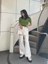 トレンドグリーンでサマーコーデ♡ 【デニム】・高め位置のスラッシュが脚長効果抜群です・EVRISのデニムはハイウエストで腰回りがすごくスッキリ見えます【トップス】・クロップド丈でハイウエストと相性抜群です・サラッとした生地感で夏場も着やすいです・首元広めで鎖骨周りが綺麗に見えます【バッグ】・横長で長財布も入るサイズ感です・サイドのEVRISロゴがワンポイントです【サンダル】・バックルデザインがEVRISらしい一足です・厚底でスタイルアップできちゃうのに楽ちんです・見た目以上に軽量で足も疲れにくいです【ベルト】・EVRIS大定番ベルトです・大きめバックルがコーデのワンポイントになります