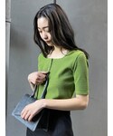 AKARI(EVRIS)のTシャツ/カットソー「コンパクトショートリブニット」を使ったコーディネート