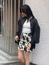柄を取り入れたモノトーンコーデ♡ 【シャツ】・162cmでお尻が隠れるくらいのサイズ感です・ストライプデザインのシアー素材で透けすぎず着やすいです【トップス】・162cmでおへそ下ぐらいの丈感です・カップ付きで一枚でサラッと着れます【スカート】・インナーパンツ付きで安心感バッチリです・サイドのベルトがワンポイント!・ベルトでサイズ感調節できます 【バッグ】・EVRIS定番のサニーモチーフのバッグです・2ジップ仕様で中が二つに分かれていて荷物の整理がしやすいです【ブーツ】・フラットな厚底でしっかり盛れるのに、1日歩いても疲れません・足首は細身なので膝下をスッキリみせてくれます
