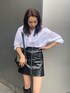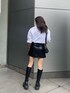 モノトーンスタイルアップコーデ♡ 【シャツ】・ショート丈で162cmでおへそ上の丈感です・裾はゴムなので丈感調節もできます・ボタンは全部開きませんが二つぐらい開けて首回りすっきり着るのがオススメです【スカート】・クロコ調のレザー素材がシンプルコーデのワンポイントになります・インナーショーツ付で安心感バッチリです・後ろジップで着脱するので前のジップデザインはフェイクになってます【バッグ】・EVRISらしいバイカラーのコンパクトバッグです・ハンドでもショルダーでも使える2way仕様です【ブーツ】・インソール入りでこっそり脚長効果を狙えます・サイドジップで着脱がラクです・すごく軽量で1日歩いても疲れません