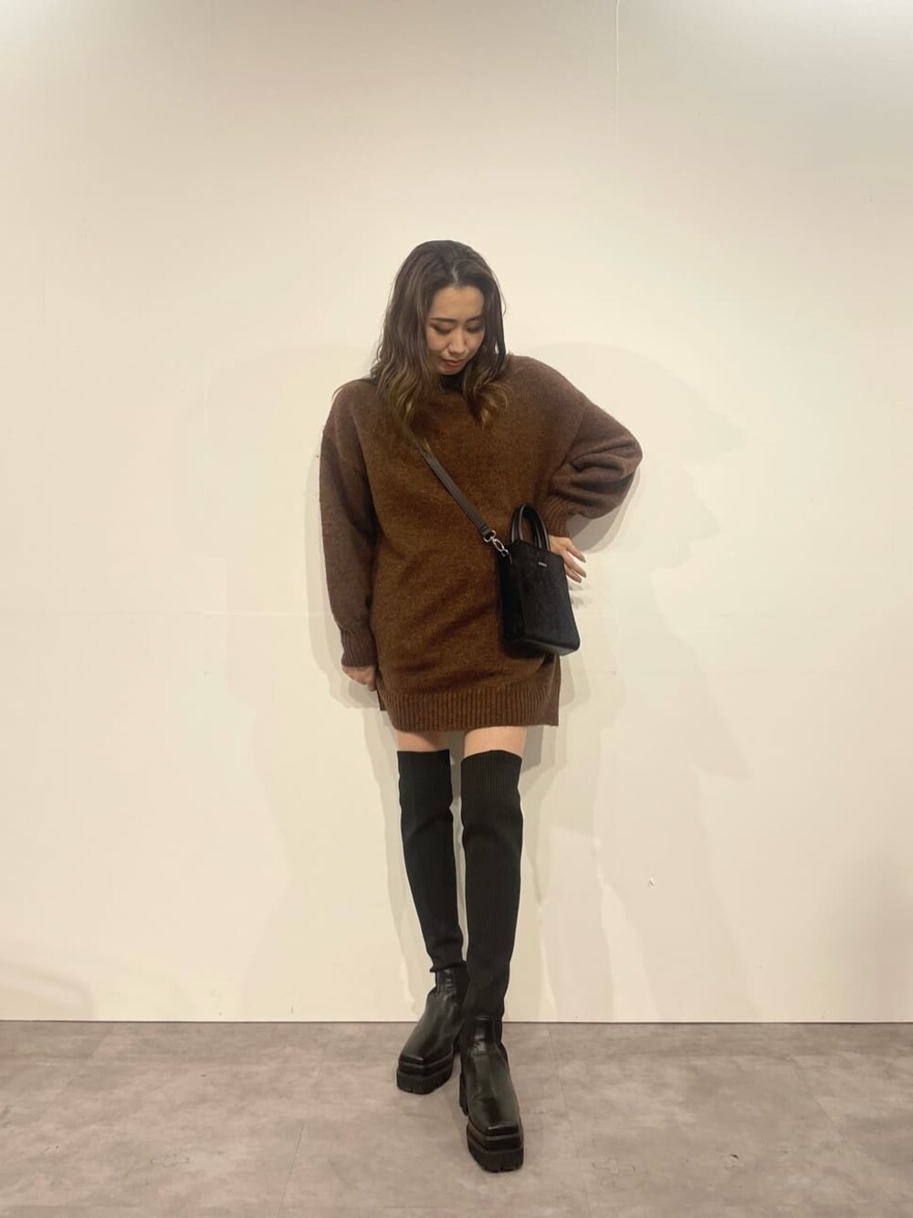 楽ちんニットワンピースコーデ♡ 【ニットワンピ】・162cmの丈感です・伸縮性がある素材でフワッとした着心地です・袖がゆるっとしており抜け感がでます【バッグ】・ハンドでもショルダーでも使える2way仕様です・しっかりした素材で型崩れしません【ブーツ】・サラッとしたリブニット素材で動きやすさ抜群です・傾斜がなく疲れないのに7.8cmヒールでしっかり盛れます