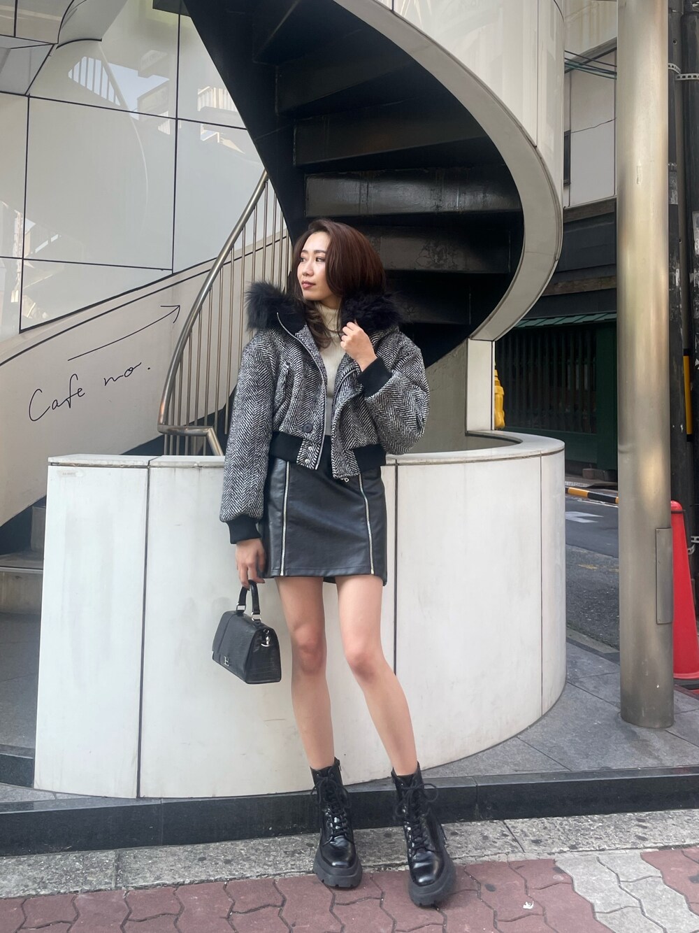 冬のブラックコーデ🤍 【アウター】・162cmでおへそぐらいの丈感です!首元のファーで小顔効果も抜群👏 【スカート】・インナーパンツ付きで安心感抜群です・ZIPデザインがワンポイントになってます【バッグ】・クロコ素材のかっちりしたシルエットが高級感があります・マチがしっかりあるので容量も抜群です・ハンドバッグとして使っても可愛いです【ブーツ】・3cmほどのインソールが入っているのでしっかりスタイルアップできます・レースアップデザインですがサイドジップで着脱が簡単です・片足400gで超軽量、疲れにくいです