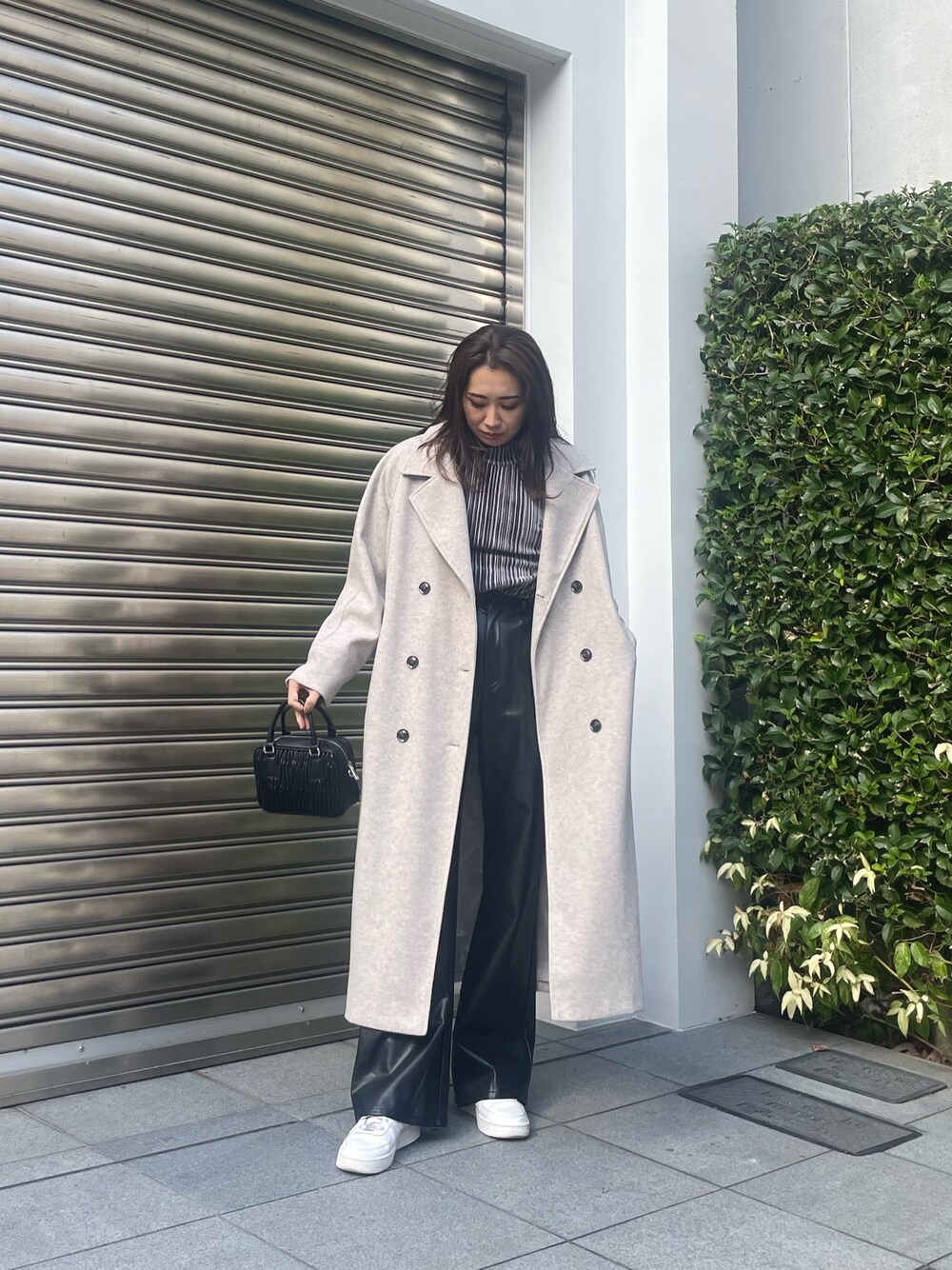 冬の綺麗めカジュアルコーデ🤍 【コート】・EVRISで毎年人気のロングコート🧥162cmの丈感です・腕周りゆったりで中も着込めます【トップス】・ベロアの光沢感がコーデをオシャレに見せてくれます・ピタッとしすぎず腕周りも細く見えます【ボトム】・162cmでスニーカーで履けるくらいの丈です・細身シルエットでスッキリ履けます【バッグ】・EVRIS定番のサニーモチーフ☀️キルティングデザインが高見えします・ハンドでもショルダーでも使える2way仕様です