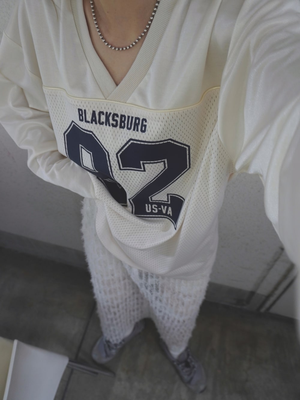 MISA(Ungrid)のTシャツ/カットソー「メッシュコンビナンバリングロングスリーブTee」を使ったコーディネート