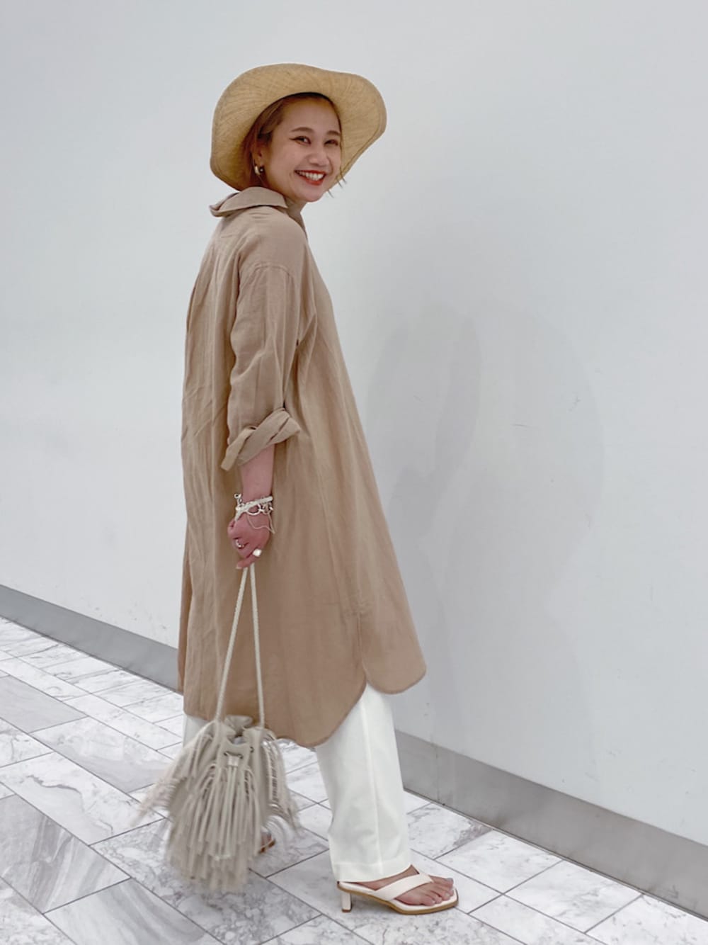 石丸春佳(Ungrid)のハット「雑材HAT」を使ったコーディネート