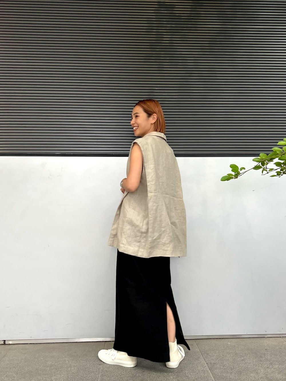 松岡奈瑠(Ungrid)のテーラードジャケット「リネン混ノースリジャケット」を使ったコーディネート